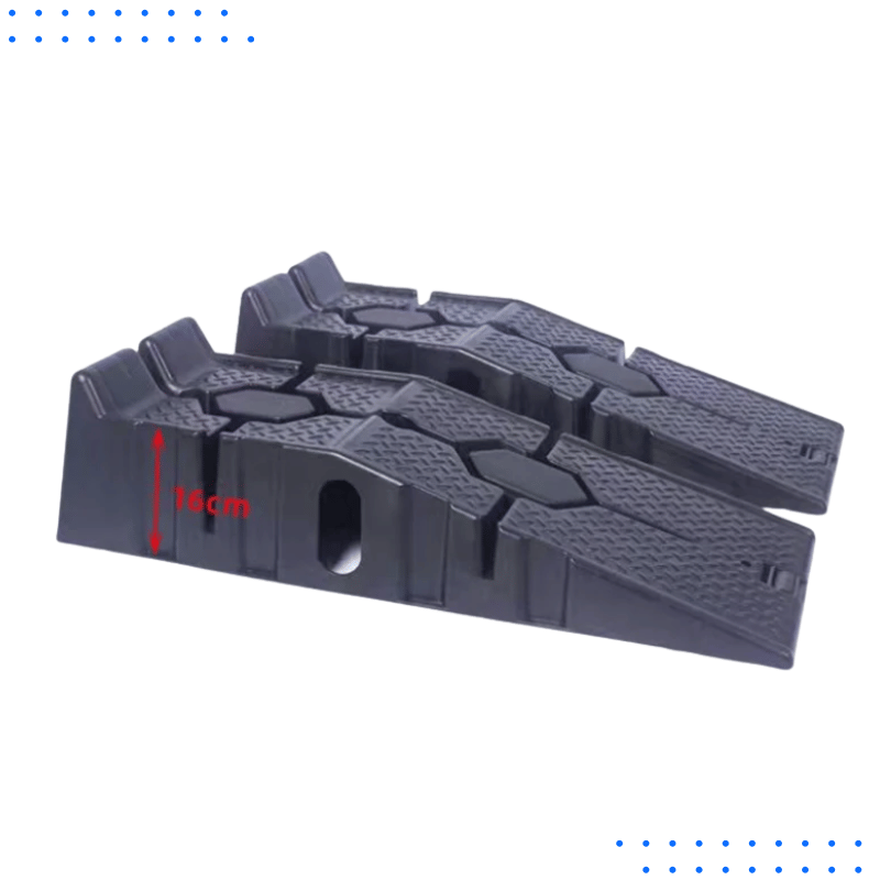 These heavy-duty ramps provide excellent elevation and safety for car maintenance. Perfect for anyone doing regular oil changes, inspections, or detailing — with peace of mind thanks to their solid structure and anti-slip grip.